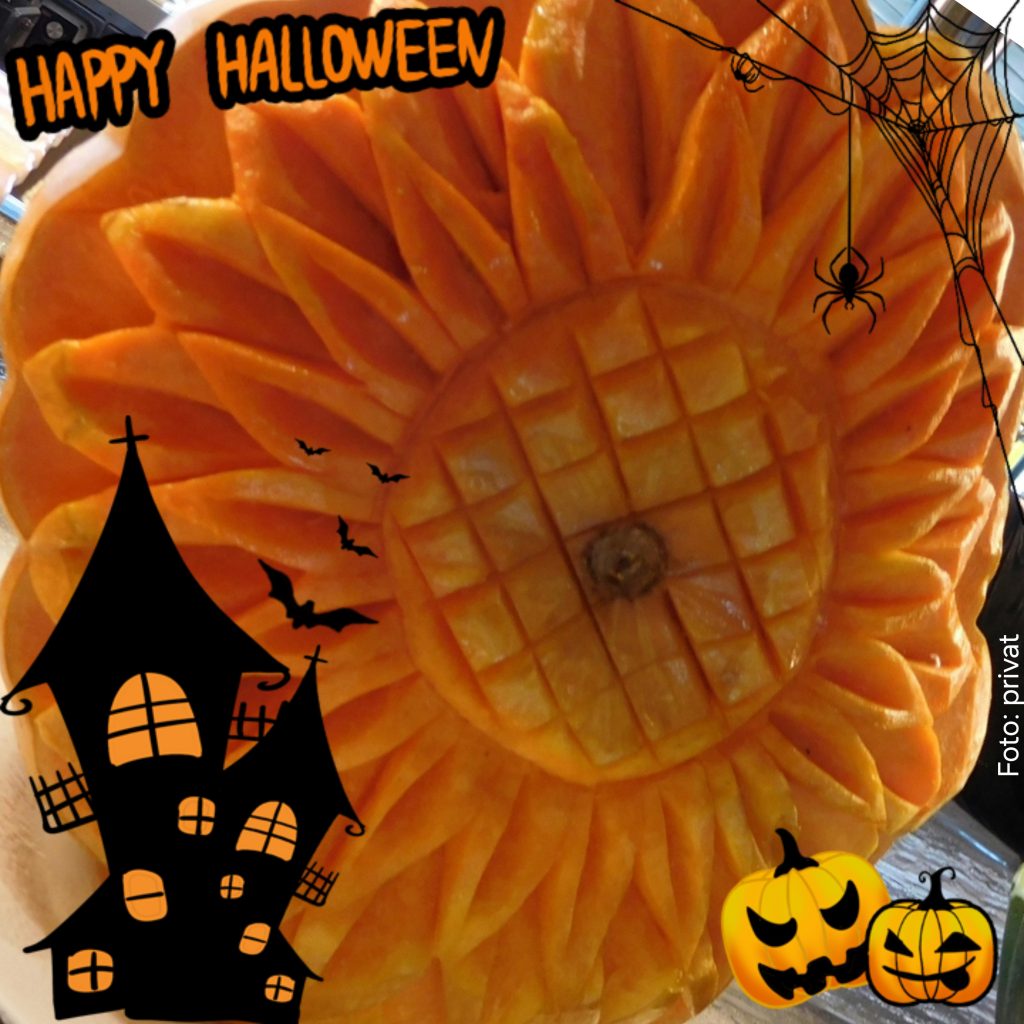 Diesen geschnitzten Kürbis habe ich vor einigen Jahren auf einer Kreuzfahrt beim Buffet entdeckt.
