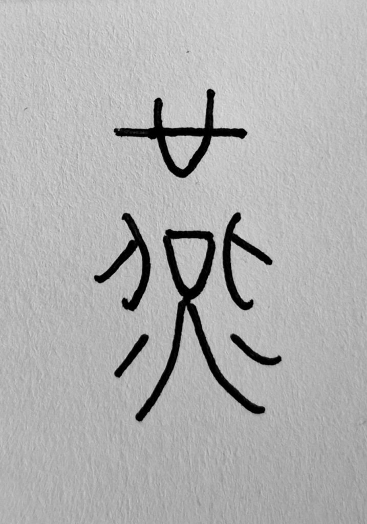 Dies ist zunächst eine Version, wie das Zeichen in ganz früher Zeit ursprünglich mal ausgesehen hat – die Ähnlichkeit zu einer Schwalbe ist mit viel Vorstellungsvermögen zu erraten: