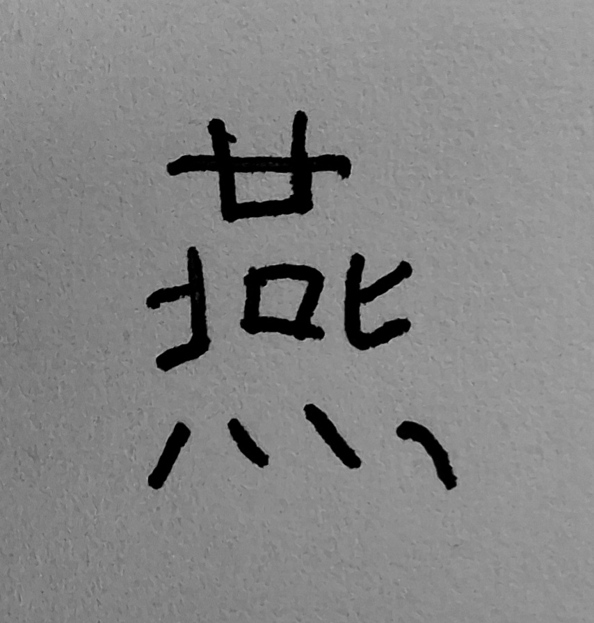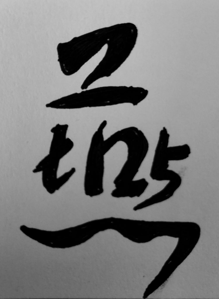 Wie versprochen, präsentiere ich Euch heute mal das Schriftzeichen für das Wort Schwalbe, yan. Damit Ihr Euch ein Bild davon machen könnt, habe ich drei Versionen des Schriftzeichens abgeschrieben – natürlich ist es keine echte Kalligraphie, zudem sehen bei mir die chinesischen Wort immer so aus, als ob ein Kind, das erst Schreiben lernt, es zu Papier gebracht hat. Und das, obwohl ich schon seit einigen Jahren Chinesisch lerne: